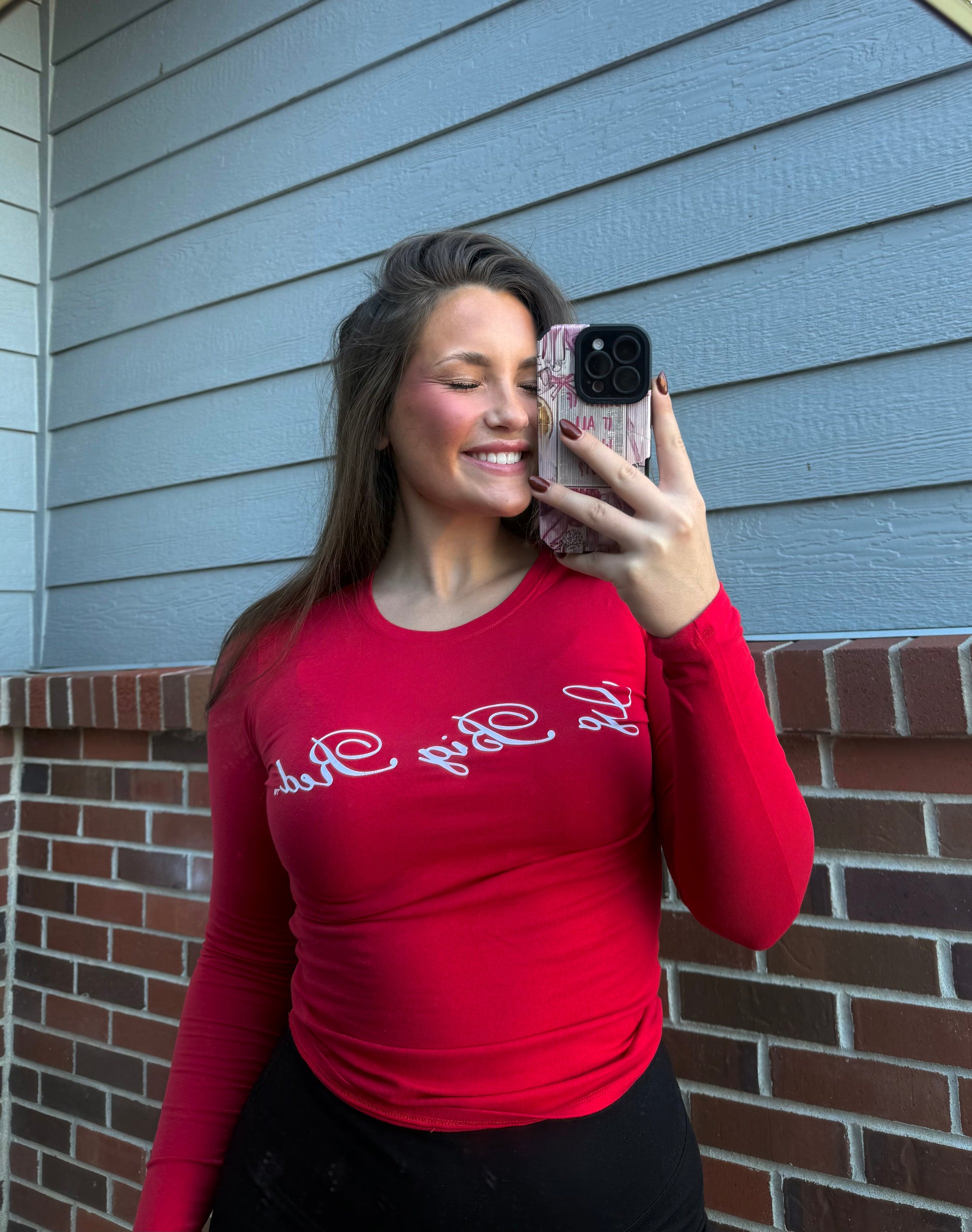 A cozy red long sleeve with “Go Big Red” in cute cursive—perfect for showing your Husker pride in style. ❤️